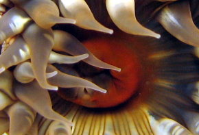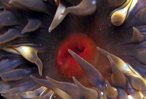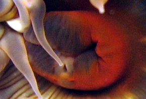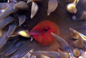 Anemones feed by catching prey that is carried in the water stream using their tentacles. Once prey is captured, the tentacle is brought to the oral opening where it is consumed.
