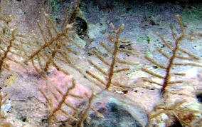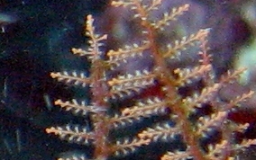 Sertularella spp.There are no doubt more than one specie of branching hydroids. These pictures show several types found around the island, always in shallow waters not exceeding five feet. Some were occupying reef top environments, others in recesses and under overhangs. Size varies from 1/4 inch to three inches in length.