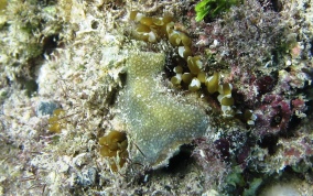 This anemone was in about 3 feet of water where there was a small amount of surge present. The tentacles were protruding from two places from under the stony coral. Looks similar to the branching anemone as to the 'fingertip pads' at almost the end of the tentacle, however the ends are not branched.