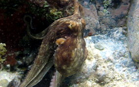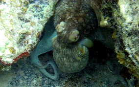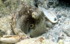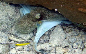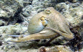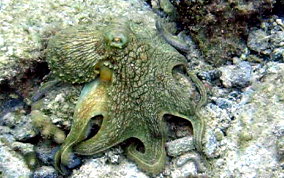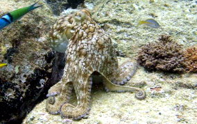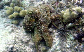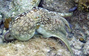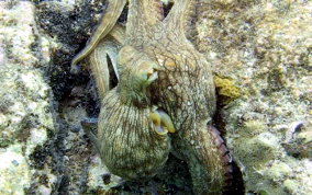 All the photos are of a single octopus. They cannot only change the color of their skin, but they also can change it's texture.