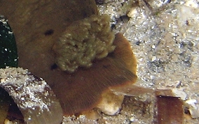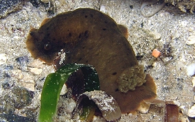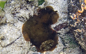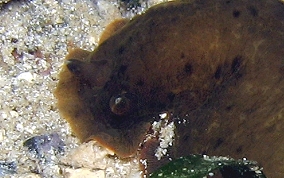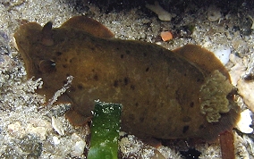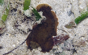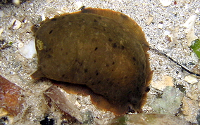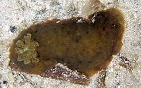 Dendrodoris krebsiiA member of the Nudibranch Family of Mollusks. The "Bunny Rabbit" tail is called an anal gill and is used for the absorption of oxygen. Note in the very first picture the anal gill has been retracted, a response to feeling threatened. The two sensory projections on their head are called rhinophores. These Nudibranch feed on sponges. They can be found hiding under rocks in shallow areas. They have an extended "girdle" around the perimeter of their body, which could possibly be used for holding fast against strong wave action.