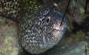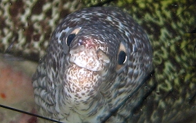 Gymnothorax moringaThe second largest species of Moray Eel found in these water. Most often seen are the juveniles that are maybe 2-2.5 feet in length. Adults grow ad long as