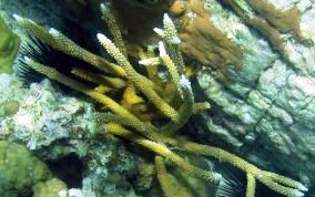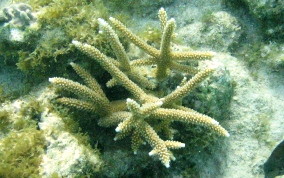 Acropora cervicornisLarger colonies most often found at deeper depths of 10 feet or more. Small patches can be found in shallow reef environments and occasionally in open areas of sand bottom. Unfortunately many of our colonies look to be struggling to survive, often with more dead branches than living ones.