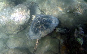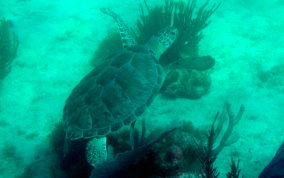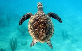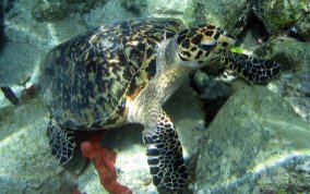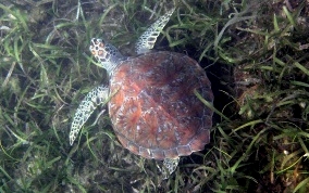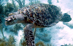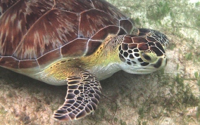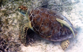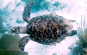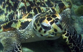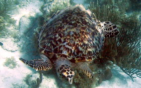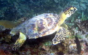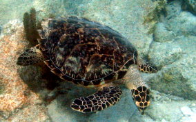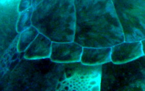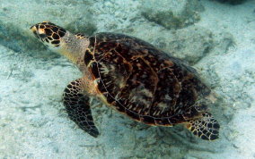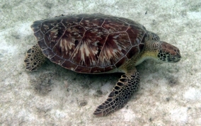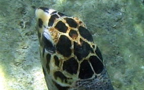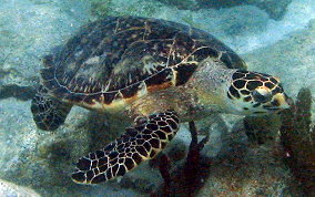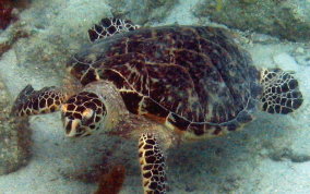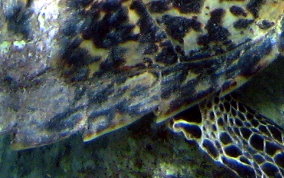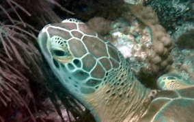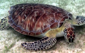 Chelonia mydasSeen much less often than the Hawksbill Turtle, the Green Sea Turtles I've