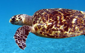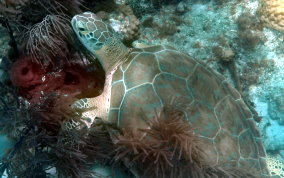 encountered were very shy. The Green Sea Turtle can grow to 3 times the size of