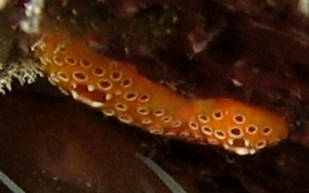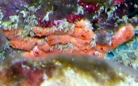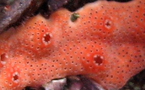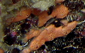 Possibly White Speck tunicate -Look for these in dark places, underside of overhangs and in cracks and crevasses. Depth of 2.5 feet or more. Small communities 1/2 to 5 inches,