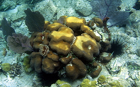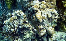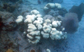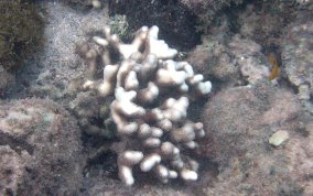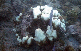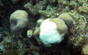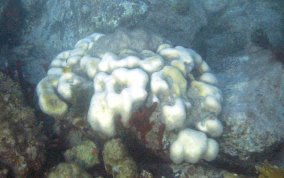 Bleaching is not actually a disease, but rather a colony's response to one or more stresses. Every coral species is vulnerable to Bleaching. Increases in light levels or ultraviolet light, decreases in light levels due to turbidity (cloudy water) and sedimentation (run-off from land), increased water temperatures (either seasonally or globally), increased salinity, and bacterial infection are all stresses. It is possible for a colony to recover from a bleaching episode based the health of the colony and the duration of the bleaching episode. However, if a colony has to deal with more than one stress factor at a time or the bleaching continues for an extended period of time, it will cause partial or entire colony death.