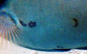 Fish are also plagues by an worm infestation called Black Ick. Black Ick, also known as Black Spot or Tang Disease is not a virus or bacteria but a worm. A simplification of the infection is that the flat worm grows on the fish, matures and then drops eggs to the sea floor. New fish pick it up and the cycle starts again. Read Details Here (external ink). The external page includes treating the infestation in an aquarium situation. In the open ocean there is no way of elimination the organism.