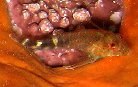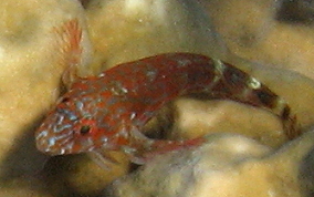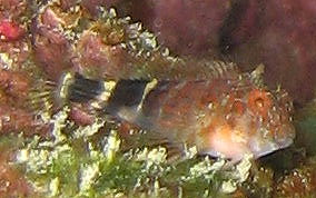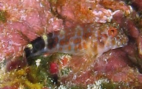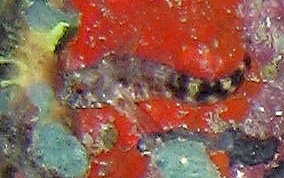 Hypleurochilus springeriThis combtooth blenny is closely related to the Molly Miller. They will be found perched in rocky wall recesses close to the surface in areas of quiet water from 1-4 foot depths. At a maximum of only 2 inches long, and with great camouflage colors, they are difficult to find. These blenny's are not found outside of the Caribbean.